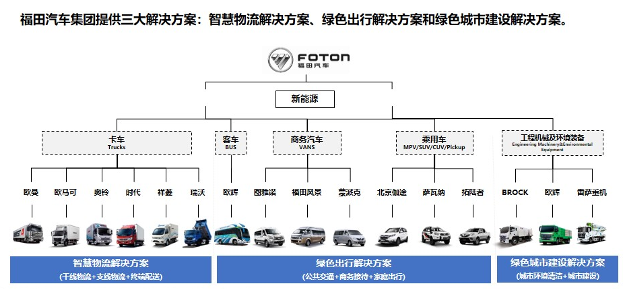 福田汽车成立于1996年,1998年在上海证券交易所上市,是中国品种最全、规模最大的商用车企业,2021年,在福田汽车成立的第25周年,总销量突破1000万辆,成为中国汽车工业史上首个销量突破千万辆的商用车企、中国首个千万级“双自主”商用车企、全球突破千万销量用时最短的商用车企。海外累计出口65万辆,连续10年位居中国商用车出口第一,产品覆盖全球110个国家和地区。
