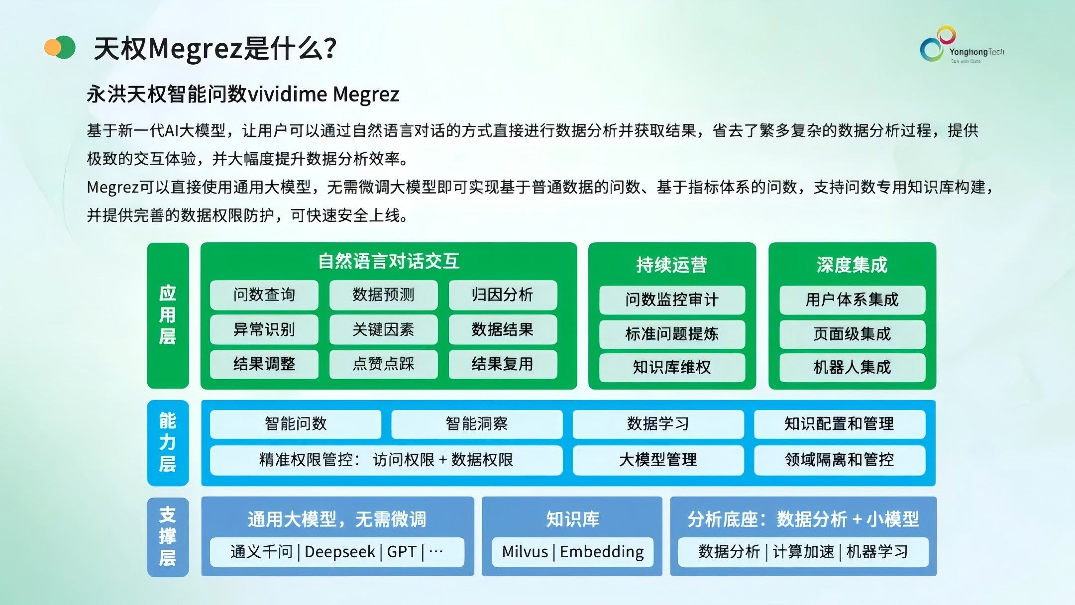 2025年7月永洪科技发布数据驱动业务的AI产品天枢Dubhe,承载了问数得方案这个联创目标的能力。