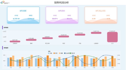 数据可视化是数据分析系统的“对外窗口”。永洪BI将复杂的分析结果转化为直观的图表、大屏看板,就像把专业术语翻译成通俗语言。用热力图展示区域销售差异,用折线图呈现用户增长趋势,用动态柱状图对比不同产品线表现。这些可视化界面不仅美观,还支持交互操作,管理者通过简单点击,就能获取详细数据解读,让决策更高效。