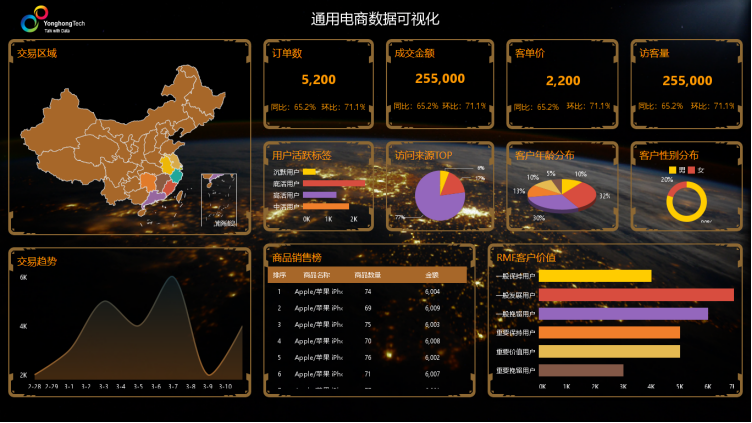 可视化效果更是让人惊喜。以前用 Excel 做图表,调整个配色都得翻半天设置,做出的报表总像褪色的旧报纸。永洪 BI 里的可视化组件有上百种,折线图能自动标出异常波动点,柱状图会用渐变色区分数据层级,甚至能把全国销售数据做成动态热力图,鼠标滑过哪个省份,详细数据就像气泡一样冒出来。上周参加一个行业峰会,看到某连锁品牌用它做的门店分析报表,CEO 在台上点点屏幕,就能看到每个门店的客流高峰时段和畅销品排行,那种直观的决策体验,比对着表格念数字带劲多了。