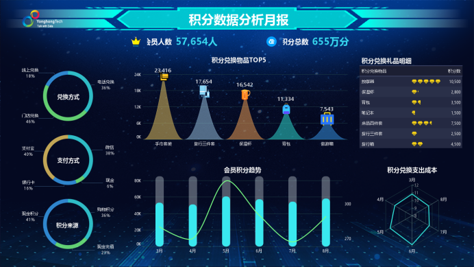 零代码操作与灵活适配性也是可视化报表工具的关键优势。永洪的可视化报表工具支持拖拽式构建与流程可视监控,企业可根据自身规模与业务需求灵活调整,无论是大型企业的复杂数据分析需求,还是中小企业的轻量化应用场景,都能精准适配。此外,可视化报表工具还具备强大的可视化呈现能力,通过丰富的图表类型、炫酷的动态效果与大屏展示功能,让数据成果生动直观,助力企业快速把握核心信息。