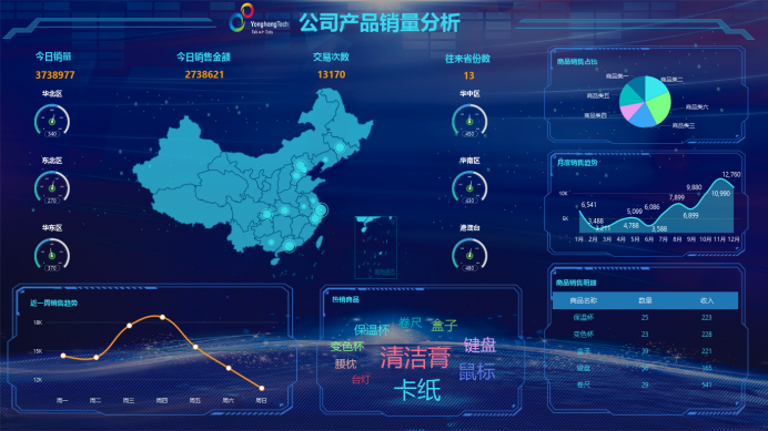 制作专业看板的核心的是简化流程,永洪bi通过人性化设计,让每一步操作都清晰易懂。首先,数据接入环节,免费可视化BI工具支持多种格式的数据导入,无论是本地表格还是云端文件,都能快速识别并整合,省去复杂的数据源配置步骤。接着进入可视化环节,永洪bi提供丰富的图表模板,只需拖拽所需组件,就能将数据转化为柱状图、折线图、仪表盘等专业样式,无需手动调整参数。最后,通过简单的界面布局调整和颜色搭配,一份结构清晰、视觉直观的数据分析看板就完成了,全程无需超过5分钟。